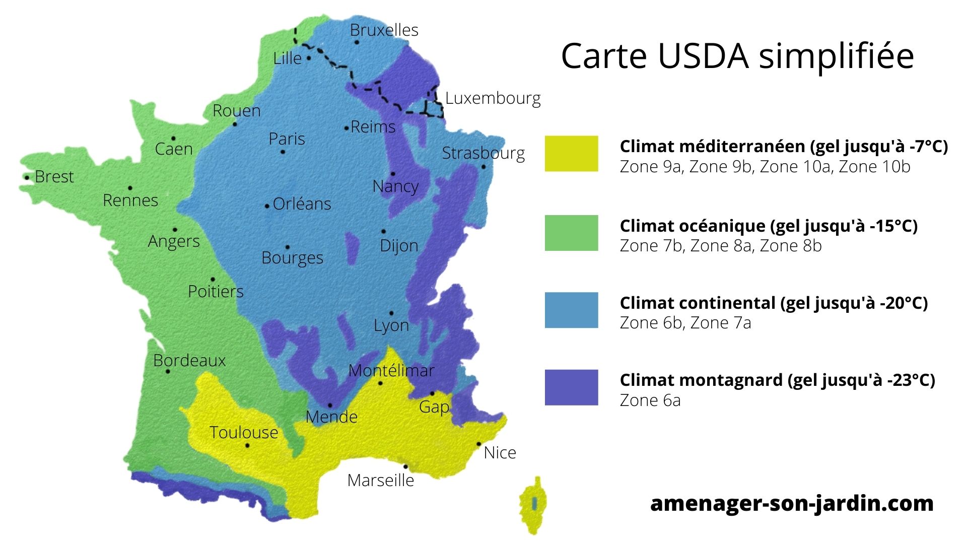 ✔️ Si vous habitez sur la zone en bleu, il faut choisir parmi les fiches « en climat continental »